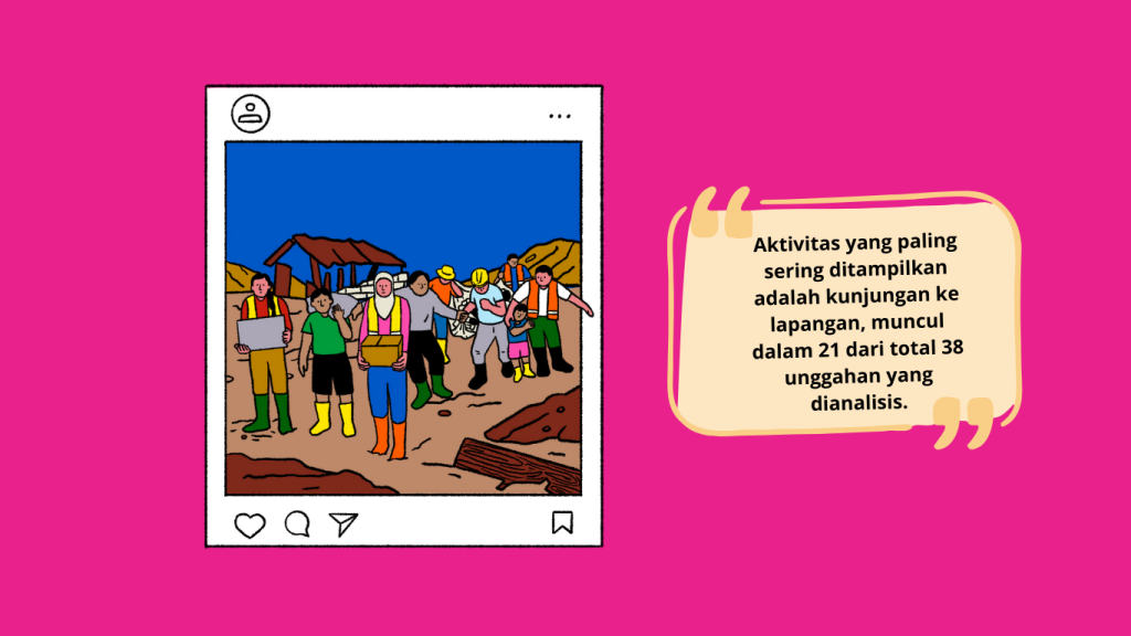 Temuan II: Sebagian besar konten lapangan berfokus pada kehadiran, dengan penekanan yang sangat terbatas pada keterlibatan langsung atau pemenuhan kebutuhan kelompok rentan.