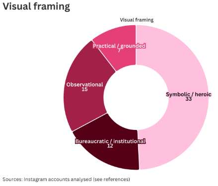 Temuan III: Dari semua unggahan yang dianalisis, terlihat jelas bahwa mayoritas konten lebih menonjolkan kesan heroik dan simbolis.