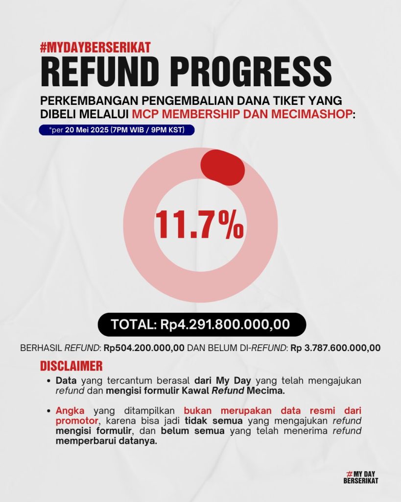 Dalam keterangan tertulis My Day Berserikat yang diterima Magdalene, dana konsumen senilai ratusan juta—dilaporkan mencapai Rp541.755.000—mengendap karena Mecimapro bersikukuh meneruskan penjualan tanpa perbaikan sistem. Sementara banyak calon penonton tak kunjung menerima pengembalian dana atau penjelasan resmi selama hampir satu minggu penuh.
