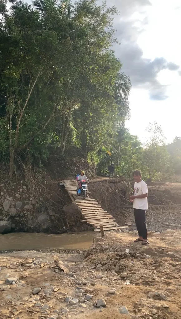 Sara, 32, adalah relawan medis yang tinggal di Padang, Sumatra Barat. Berasal dari Jambi, ia kini menetap di rumah kos yang relatif aman dari banjir. Pagi itu, air di halaman kosnya hanya setinggi mata kaki. Namun, hanya berjarak sekitar sepuluh menit perjalanan, kondisi di Batu Busuak sudah jauh lebih parah. Sebuah jembatan ambruk. Warga terjebak di kawasan perbukitan. Sungai meluap, menerjang rumah-rumah dan permukiman.