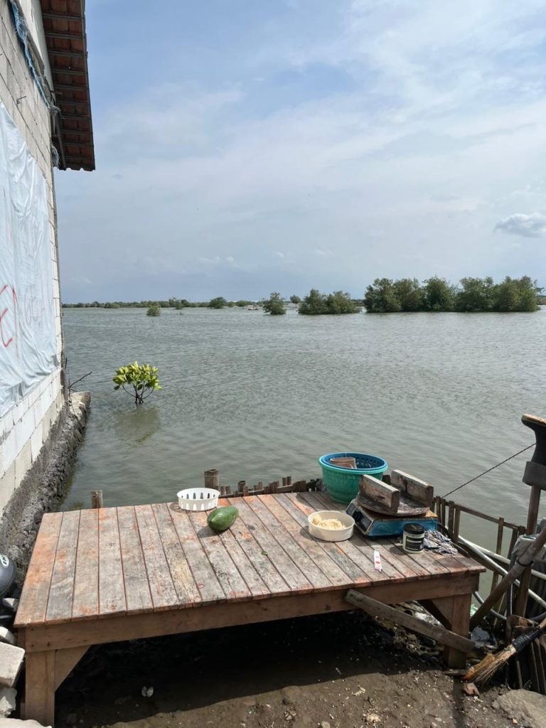 Banjir besar 2021 menjadi titik balik. Saat itu Simin memaksa pulang meski jalan sudah ditutup. Air setinggi dada orang dewasa. Warga mengungsi ke sekolah selama lebih dari satu minggu. Rumah-rumah terendam. Perabot rusak. Dapur Simin, yang posisinya lebih rendah, hilang tersapu rob.