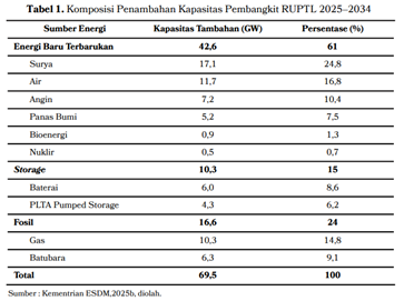 Diketahui, pemerintah menargetkan dalam RUPTL 2025-2034 tambahan 16,6 GW berbasis fosil, di mana 10,3 GW di antaranya berasal dari pembangkit listrik berbasis gas.