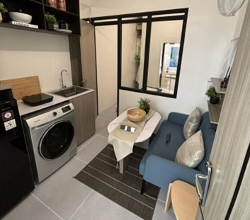 Ruang utama dirancang untuk menampung semua hal sekaligus—memasak, mencuci, bersantai, dan berkegiatan. Dengan ukuran sekitar 2,5 x 4,2 meter, ruangan ini jadi pusat segala aktivitas, core from the core, tanpa sekat atau privasi.