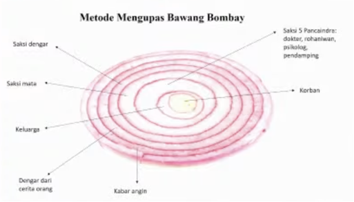 Setidaknya, kata Yuyud, ada tujuh lapisan yang perlu ditelusuri, dari kabar angin, cerita orang, saksi dengar, saksi mata, kesaksian profesional (dokter, psikolog, rohaniawan, pendamping), hingga akhirnya sampai pada korban itu sendiri.