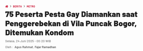 Tangkapan layar dari media seperti Viva, Kompas, dan Detik menunjukkan adanya bias tajam dan penggiringan opini publik yang merugikan komunitas LGBTQ+.